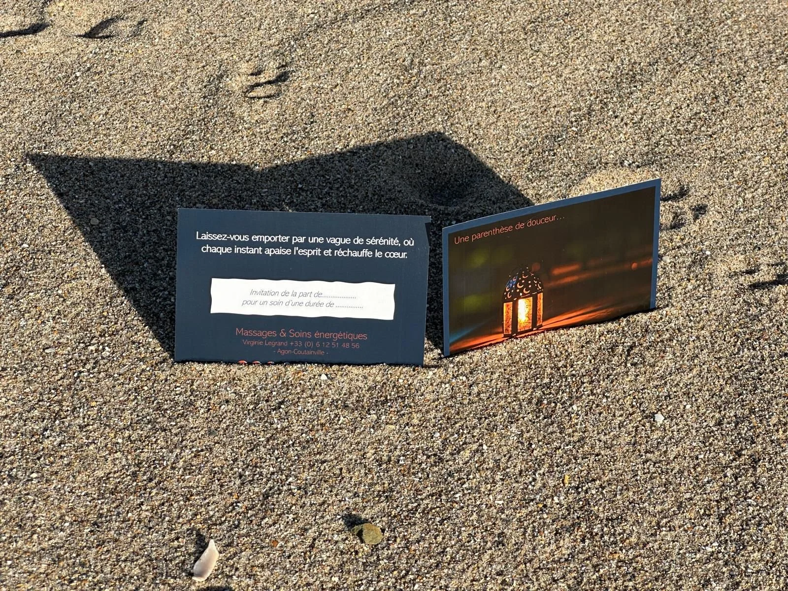 Les bons cadeaux sont disponibles à l’achat directement à Agon-Coutainville (Manche) ou sur demande. Un pdf imprimable peut être envoyé par email.